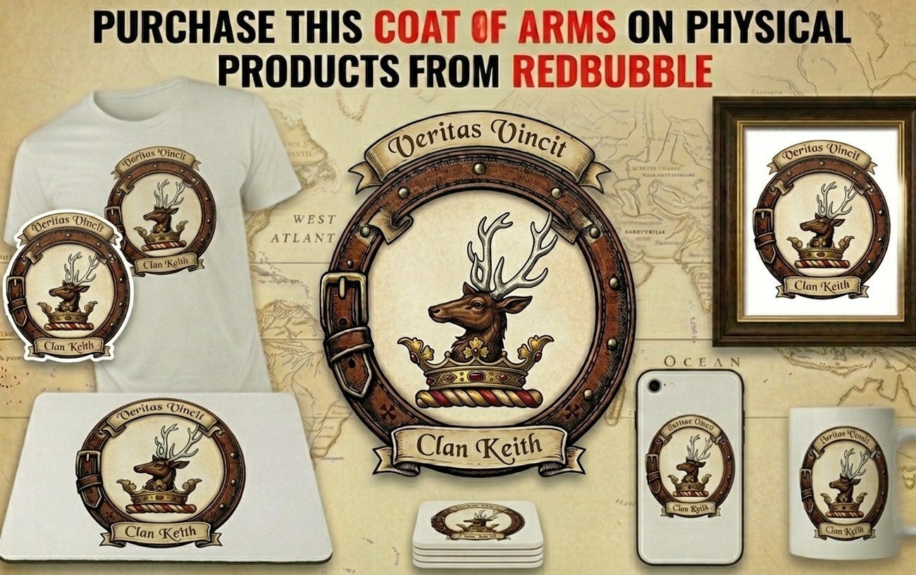 Today, whether it is remembered through the dramatic cliffside ruins of Dunnottar Castle, the surviving line of the Earls of Kintore, or the crest badges worn proudly by descendants across the globe, the history of Clan Keith remains one of Scotland’s most epic tales of duty, survival, and unwavering truth.